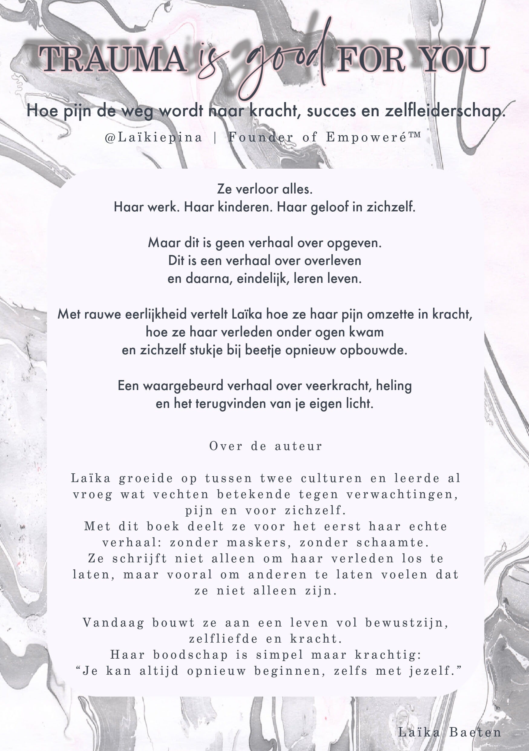 Laïka neemt je mee in haar persoonlijke reis – van diepe dalen, zelftwijfel en trauma tot de herontdekking van haar eigen kracht.